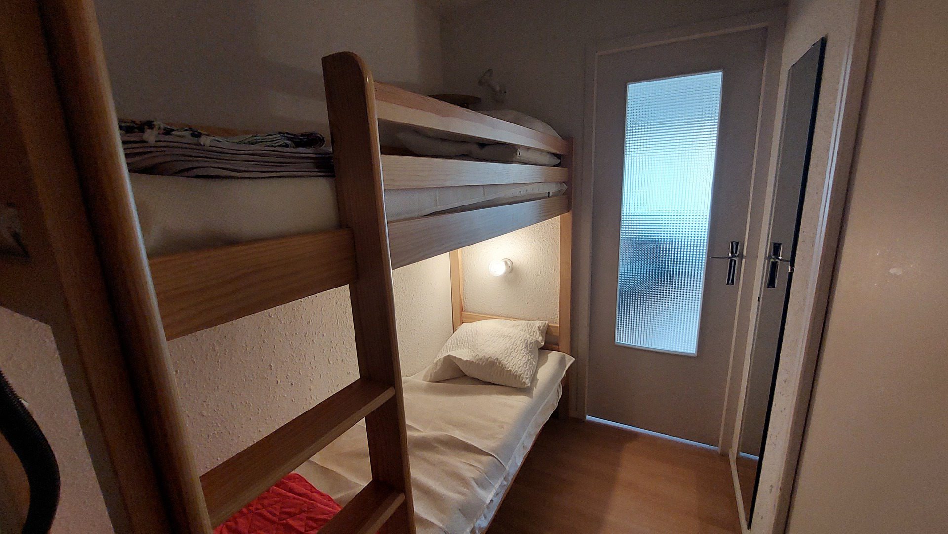 -entrance area separated by a door from the living room with 2 bunkbeds (90x190)