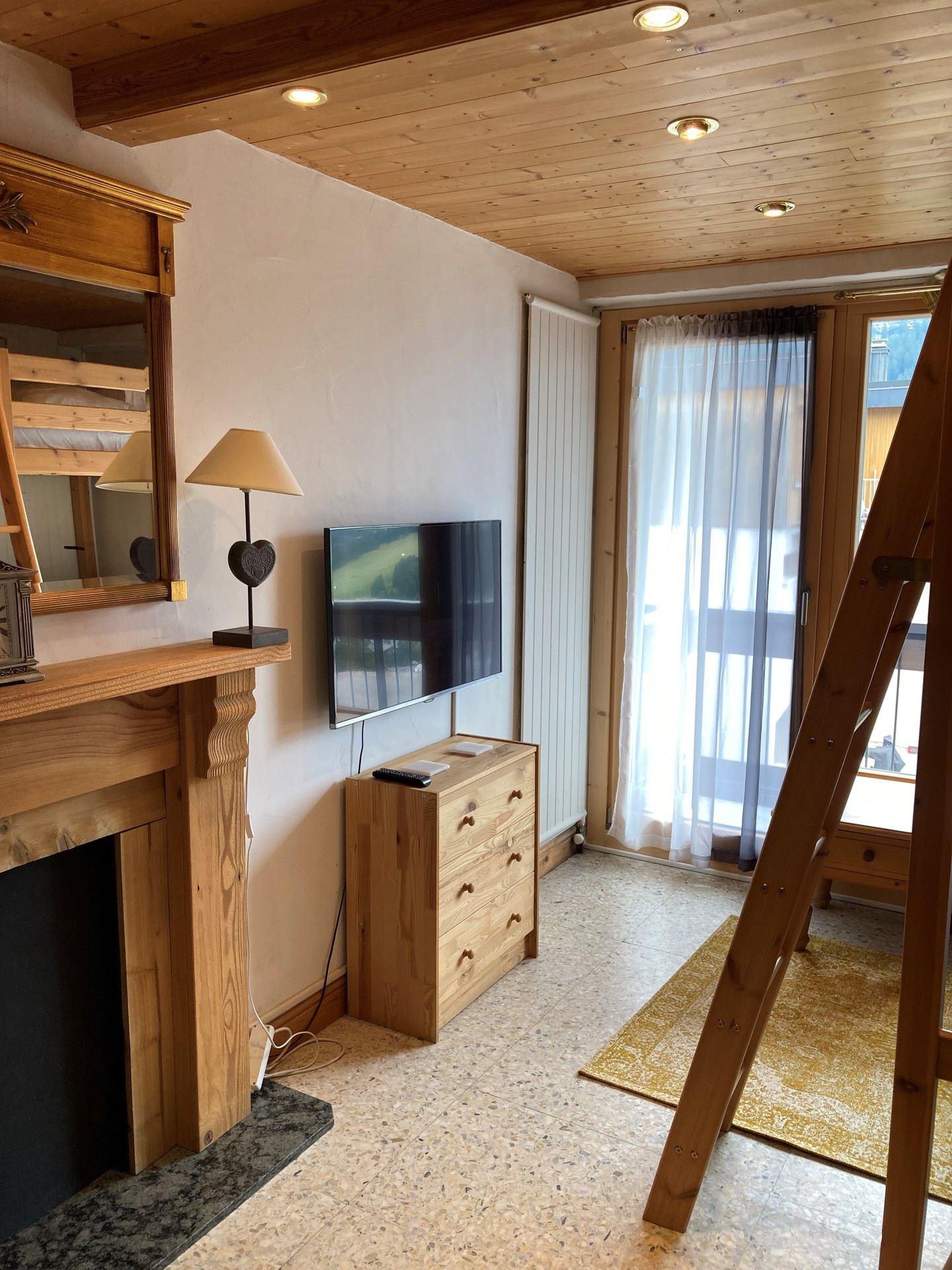 - Living room: a double sofa bed convertible into 140cm (2 people)